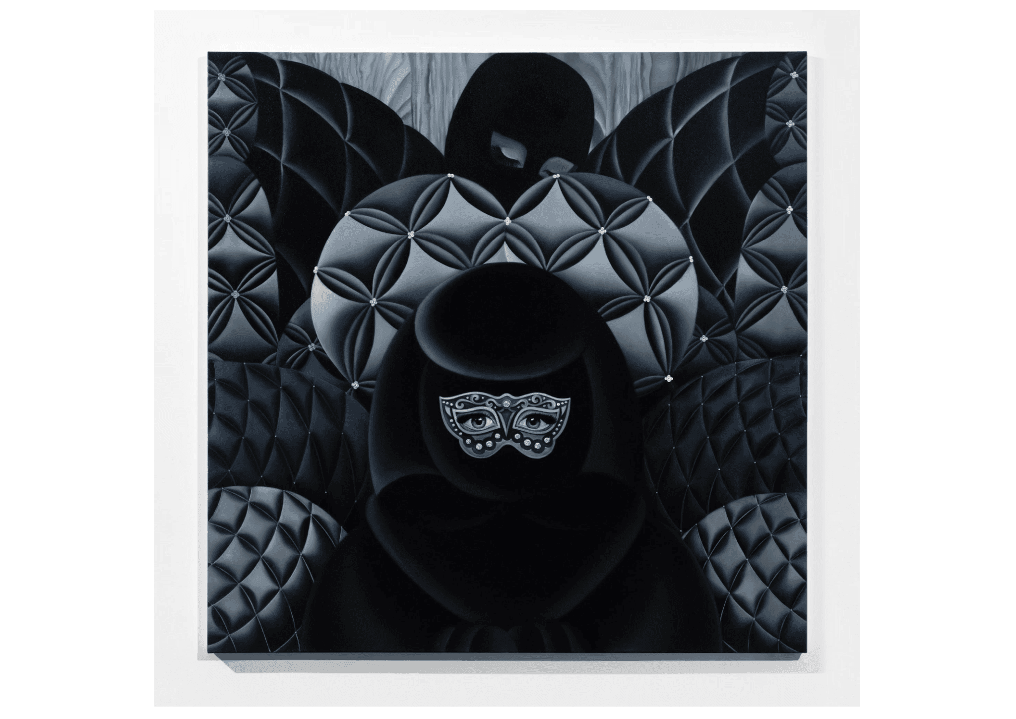 Velvet Other World, Worship of the Lady from Behind, 2023. Oil and rhinestones on canvas. 48″ x 48″. Photo courtesy of the artists and Kapp Kapp.