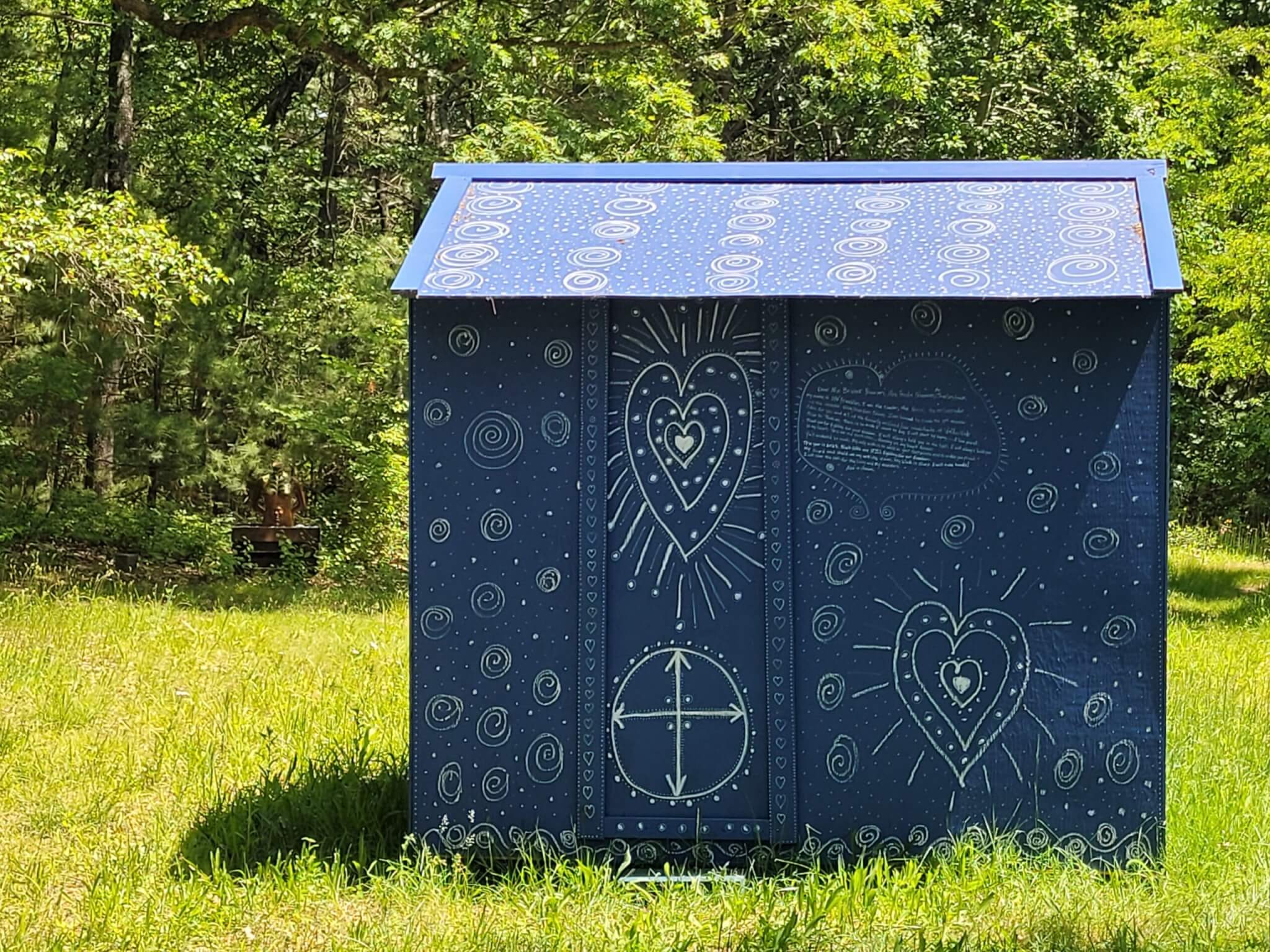 Ifé Franklin, Slave Cabin, installed at Brister’s Hill in Walden Woods, 2025. Photo courtesy of the Umbrella Arts Center.