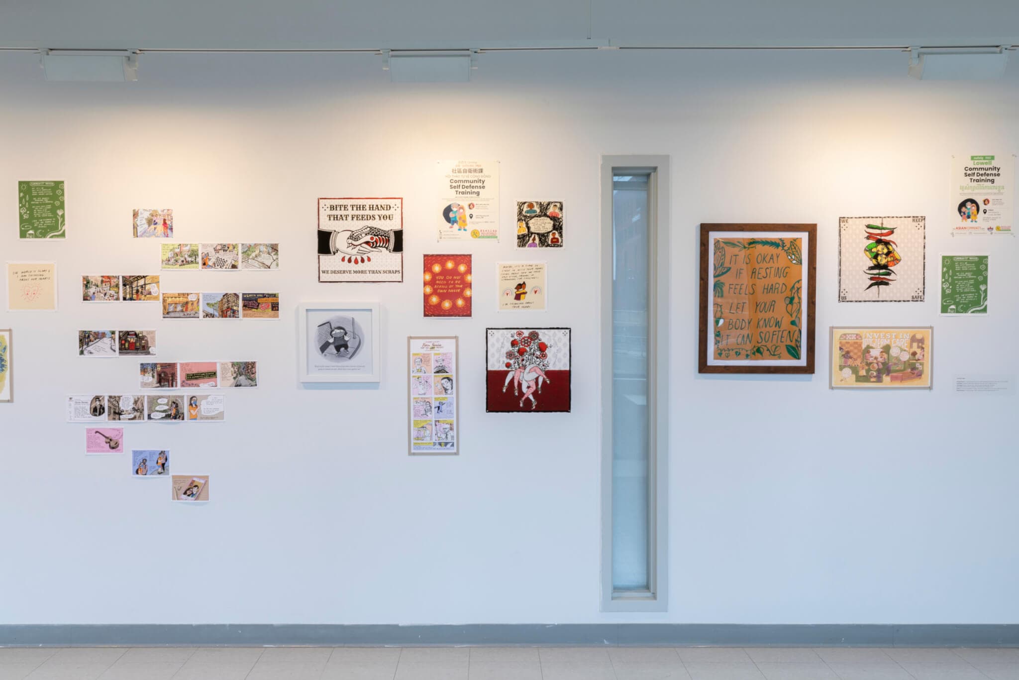 Installation view, "Call and Response: Illustration in Uncertain Times," Pao Arts Center, 2023. Courtesy of Pao Arts Center. Photo by Mel Taing.