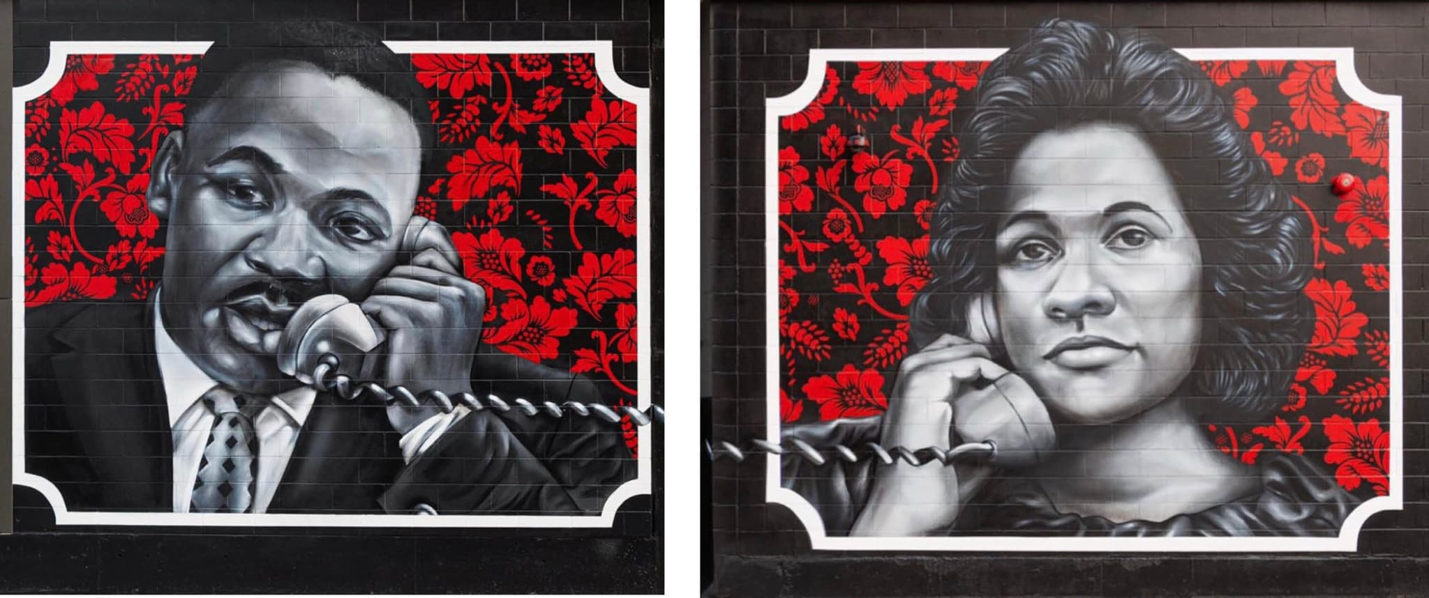 Rob “ProBlak” Gibbs’s Roxbury Love Story (2020) depicts Martin Luther King Jr. and Coretta Scott King on a new building near Nubian Square where the Twelfth Baptist Church where King served as an assistant minister from 1951 to 1954 formerly stood. Photos by Geo Ortega.