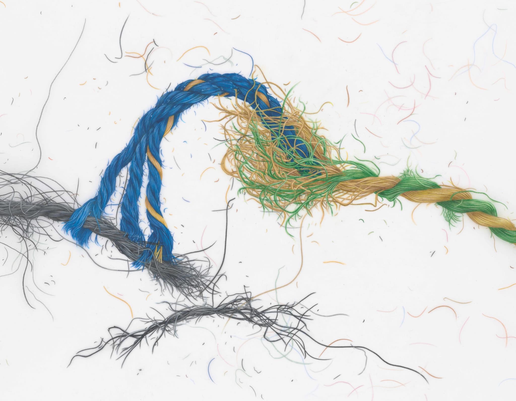 Evelyn Rydz, Unraveling, #7, 2019. Colored pencil. 11″ x 14″. Photo by Stewart Clements.
