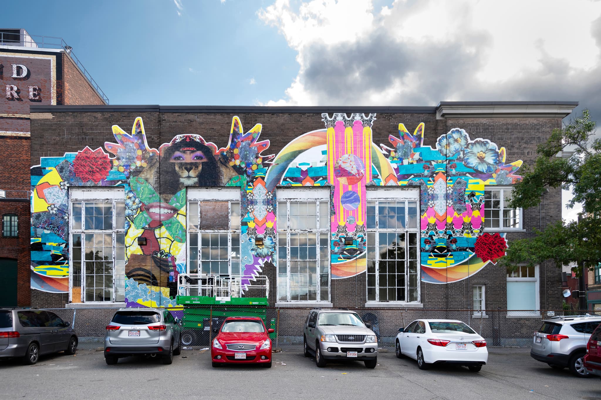 Nick Cave, Augment, produced by Now + There. Mural installation, 555 Columbia Road in Uphams Corner, 2019. Photo by James Prinz. Courtesy of Nick Cave and Jack Shainman Gallery.