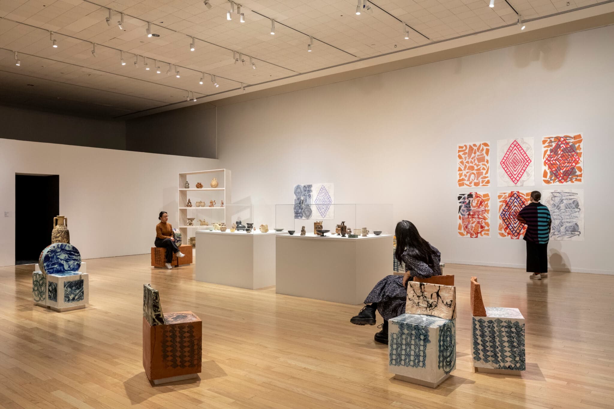 Each of these displays makes us think of how we interact with our “rare” or “precious” objects. Many of the artifacts are not behind glass—they are out on funny-shaped plinths, displayed on shelves that one might have in their home. Cherubini’s chairs are for sitting, her objects are grouped by function. The SANGREE pieces are playful. Kay’s are approachable. The reverence is turned on its head and viewers are given the opportunity to look at the objects, and the collection, through a different lens.