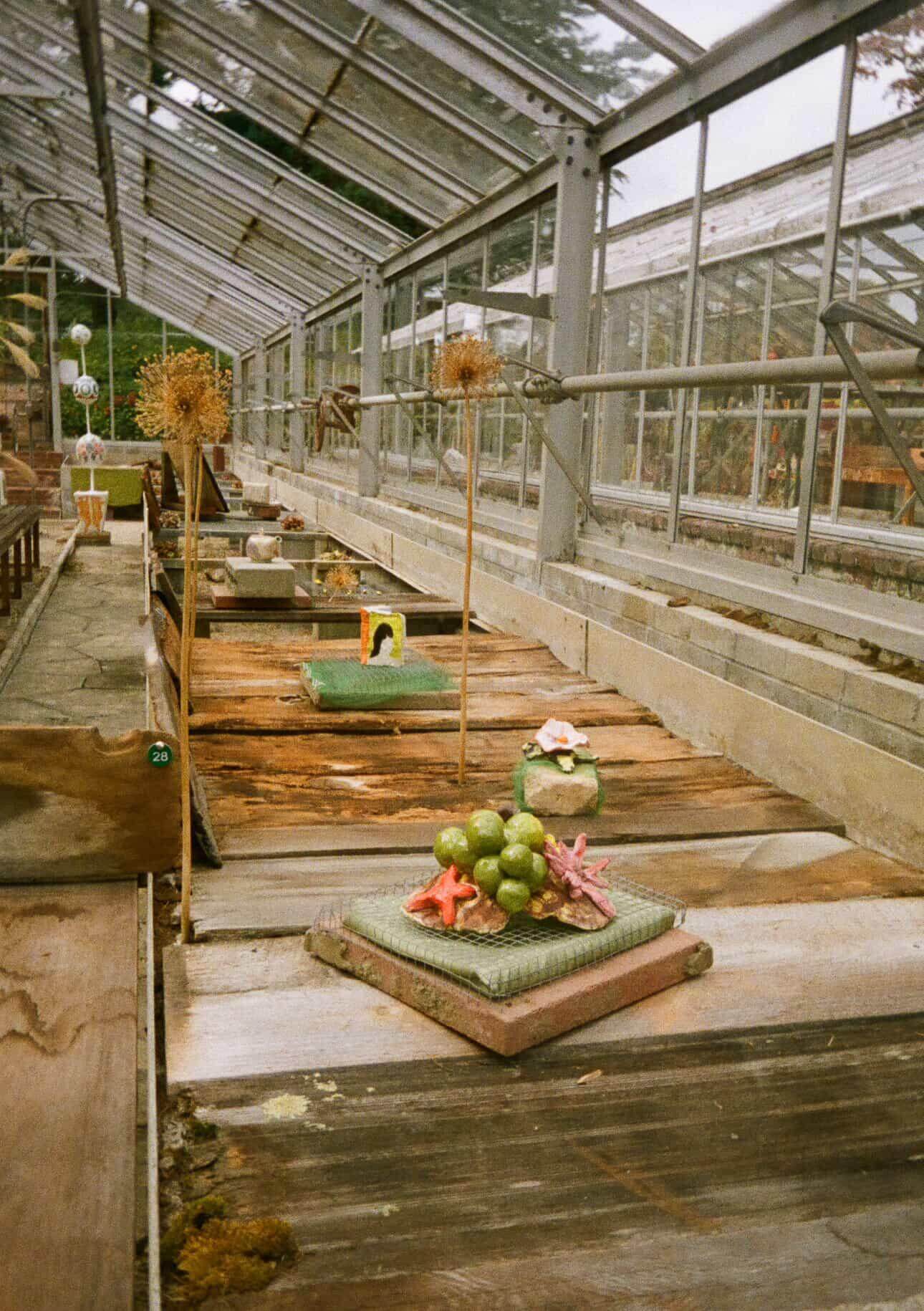 The Haskell Gardens were tended to by Allen C. Haskell, who was a topiary artist and a horticulturist and very storied. He was very eccentric, sort of an artist, always having some gossip about him and always having a good time. He worked with Martha Stewart and did some landscaping for a queen. It was private until about ten years ago, but people would go to buy their plants there. He had plant sales; he had a little antique shop. A couple years after I first visited, I was just like, “I want to do something similar to what I was doing in Mexico City here.” And I was like, “Okay, it makes total sense for it to be in the greenhouses.” I talked to the steward who now works for the Trustees, and she was so down to do it. She was just like, “Yeah, do it. Screw into that, drill into that.”